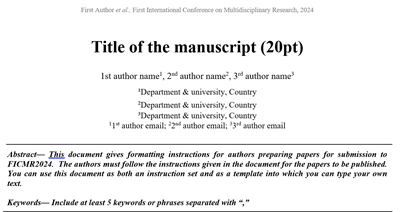 We welcome paper submissions. Prospective authors are invited to submit full (and original research) papers (which is NOT submitted/published/under consideration anywhere in other conferences/journal) in electronic (PDF/Doc only) format through the easy chair conferences management system website or via email --multidisciplinary2026@gmail.com or editor@authoruniteconference.com or authoruniteconference@gmail.com